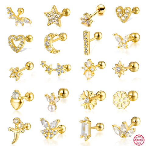الأكثر مبيعًا أقراط مرصعة بالزركونيا الصغيرة أنيقة مرصعة بمسمار مرصع بالفضة الإسترليني مطلية بالذهب مجوهرات غير مسببة للحساسية للأطفال