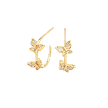 أقراط أنيقة من الفضة الإسترلينية على الطراز الفرنسي أقراط مرصعة بالذهب مطلية بشكل جميل مجوهرات فراشة من الزركونيا المكعبة للنساء