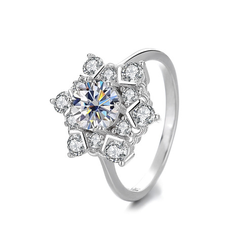 925 Sterling Zilver Goud Rose Verguld Chunky Ringen Voor Vrouwen 1ct Moissanite Modieuze Sneeuwvlok Ontwerp Voor Feesten