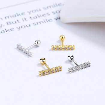 9 tối giản 925 bạc mạ vàng không gây dị ứng vít trở lại Bông tai thời trang đồ trang sức chèn Zircon Hàng Stud Bông tai cho phụ nữ